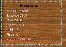 Cuando tus puntos de Noble superan los puntos que tenes en Asesino y en Bandido tu personaje se convertirá automaticamente en Ciudadano, adicionalmente puedes pagar la fianza teniendo en cuenta que cada punto en Noble equivalen a 25 monedas de oro. Se debe sumar la cantidad de Asesino y la cantidad de Bandido, el total sería la suma a pagar mediante el comando /FIANZA