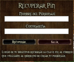 En AOForever es posible recuperar el PIN del personaje de manera automatica mediante el sistema de recuperación de pin el mismo puede abrirse dentro del juego con el comando /RECUPERARPIN